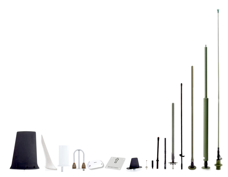 Extenso portfólio de antenas para aeronaves para uma ampla gama de funções, incluindo: comunicações, antenas NAV, GPS, ADS-B, transponder, Localizador VOR, antenas Glide Slope, Marcadores Beacons...