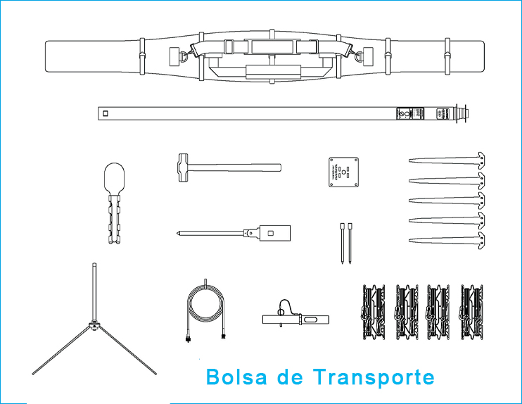 O mastro é fornecido com anéis de suporte, cabos de suporte e estacas de ancoragem para segurança quando erguido O kit contempla, ainda, bolsa de transporte, cabo coaxial de 50’ (15 m) e demais acessórios. Este kit pode ser usado com os rádios VHF GK615 e GK616 da Becker Avionics.